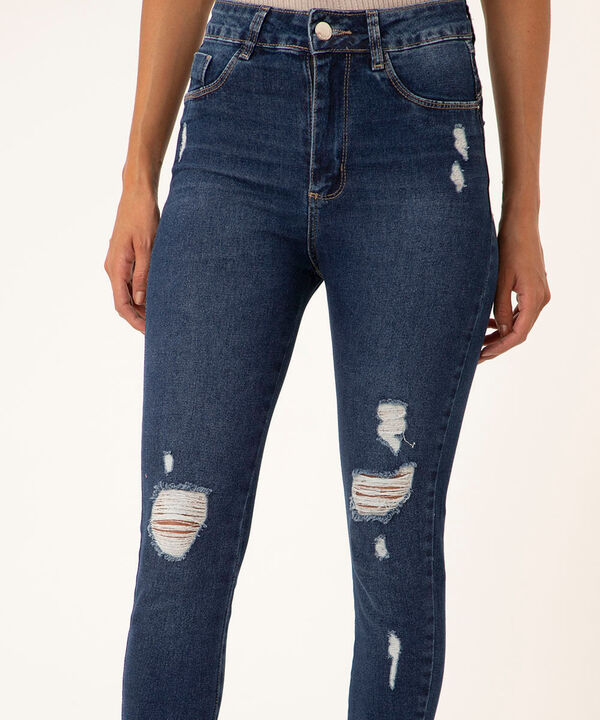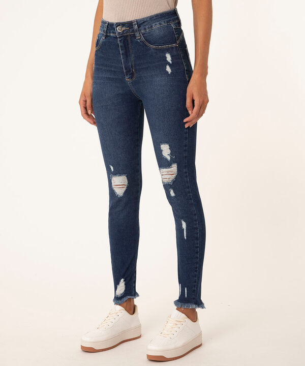 calça jeans skinny destroyed sawary azul escuro