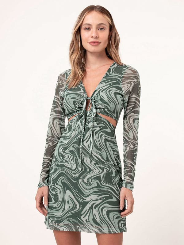 vestido curto de tule psicodélico cut out verde